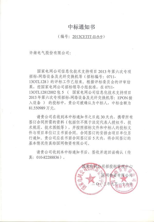 中標(biāo)國(guó)家電網(wǎng)公司信息化技術(shù)支持項(xiàng)目2013年第6次專項(xiàng)招標(biāo)江蘇、福建地區(qū)
