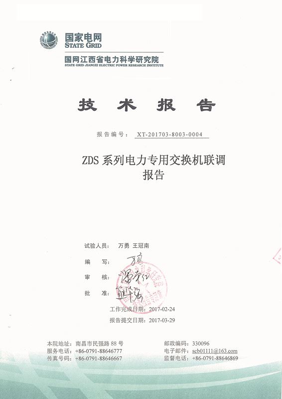 熱烈祝賀ZDS系列電力專(zhuān)用交換機(jī)在江西省成功掛網(wǎng)運(yùn)行