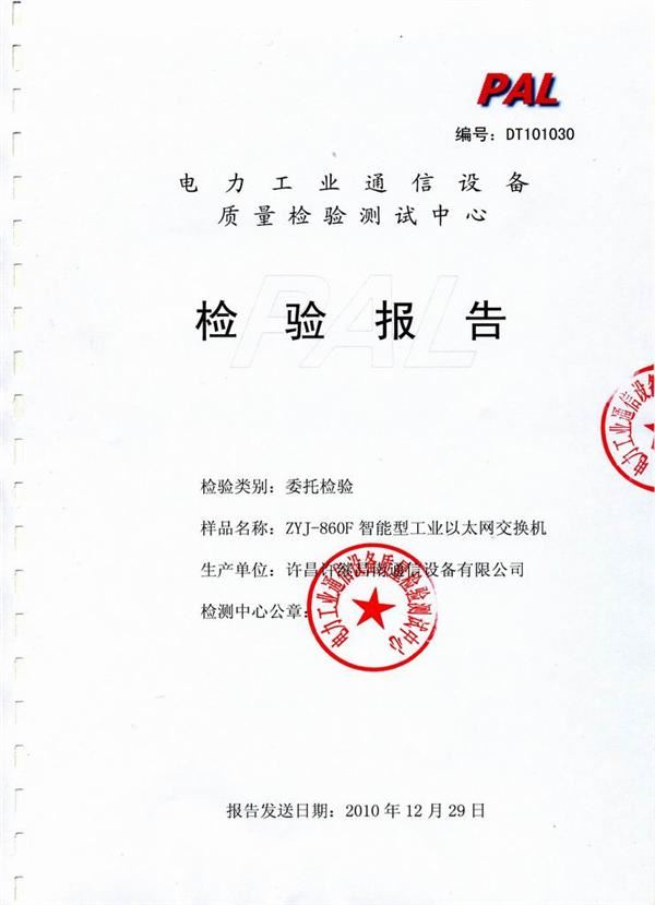ZYJ-860F檢驗(yàn)報告