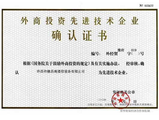 先進(jìn)企業(yè)證書